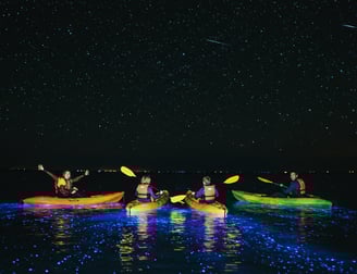 Una experiencia mágica bajo las estrellas. Navega en kayak por aguas que se iluminan con cada remo gracias al fenómeno de la bioluminiscencia. Ideal para aventureros y amantes de la naturaleza nocturna.