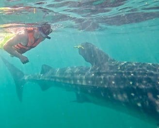 Nada junto al pez más grande del mundo en esta experiencia inolvidable. Vamos por ti tempranito y navegamos hacia Cabo Catoche para tener 2 oportunidades de nado con el tiburón ballena. También exploramos manglares, hacemos snorkel y comemos ceviche fresco en la playa.